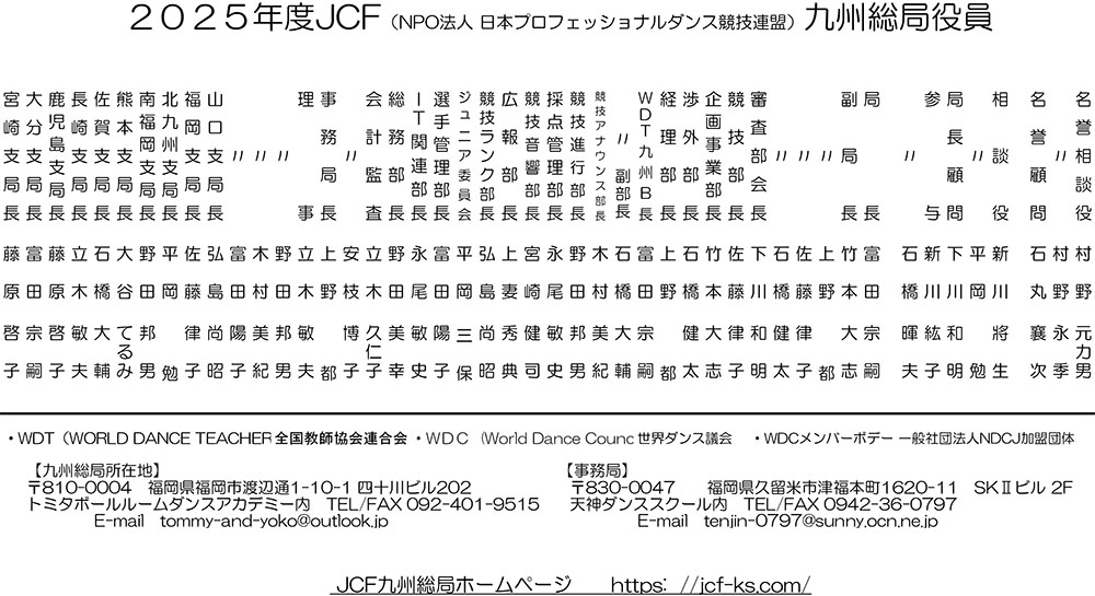 団体名 | NPO法人JCF 日本プロフェッショナルダンス競技連盟 九州総局 |